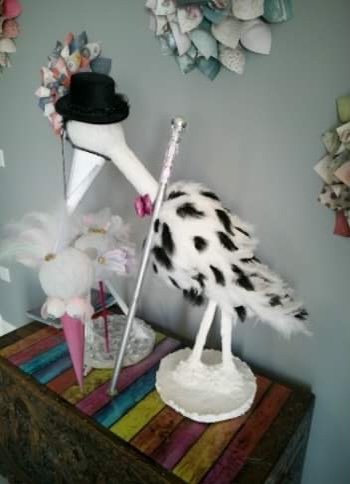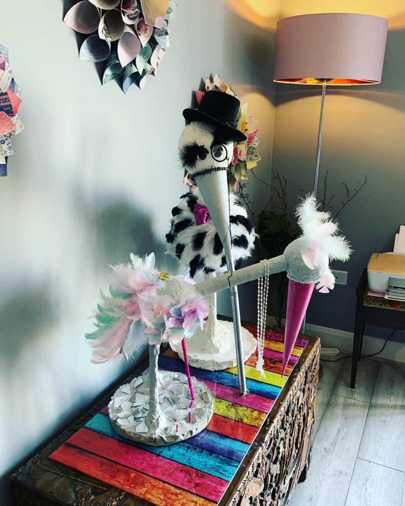 I made Bertha during the first lockdown back in March 2020, seems like a long time ago now.. I had no idea what I was making, I’d just always wanted to make something with paper mache, at some point I decided she’d was a game ‘ole’ bird with a love for cabaret and in that moment I decided she needed a dancing partner, which is when Bert was created in my mind..