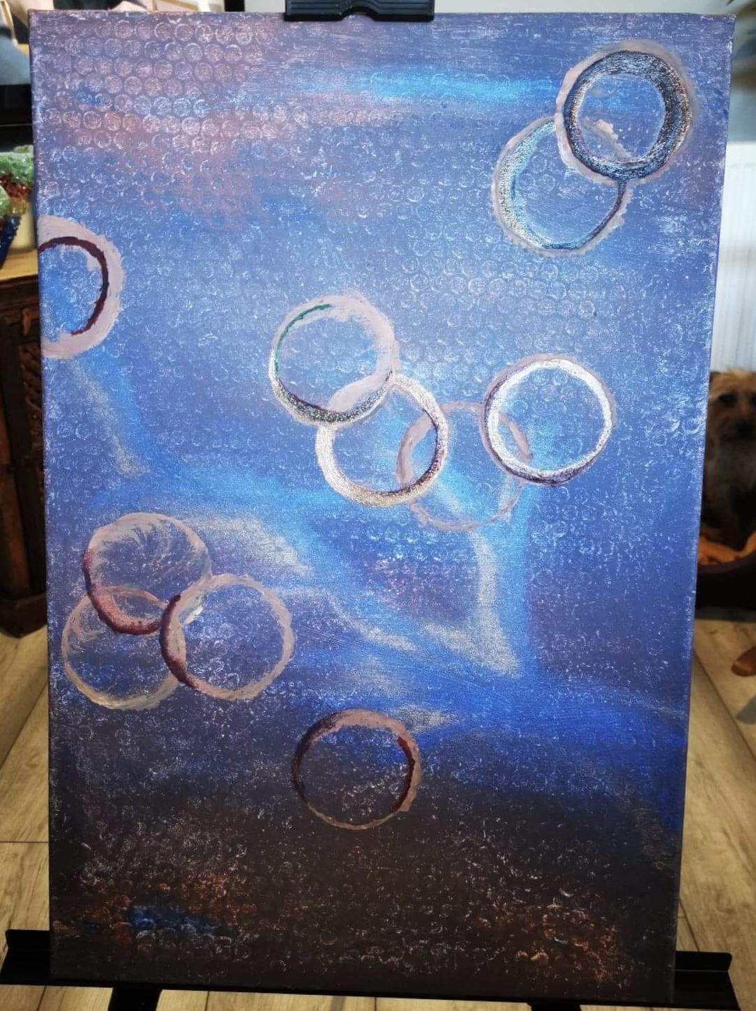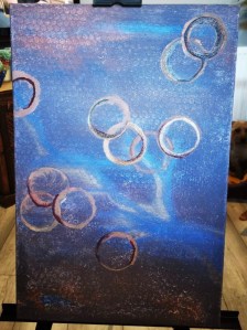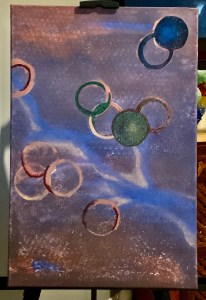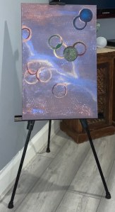 I’m sitting here distracting myself with this, writing down my thoughts, but also by looking at my next painting, it’s a bit duhh at the moment but it’s got potential 😂😂😂 I’m seeing bright sticking circles, but everything else having a cosmic feel.. With a totally different feel and lightness..