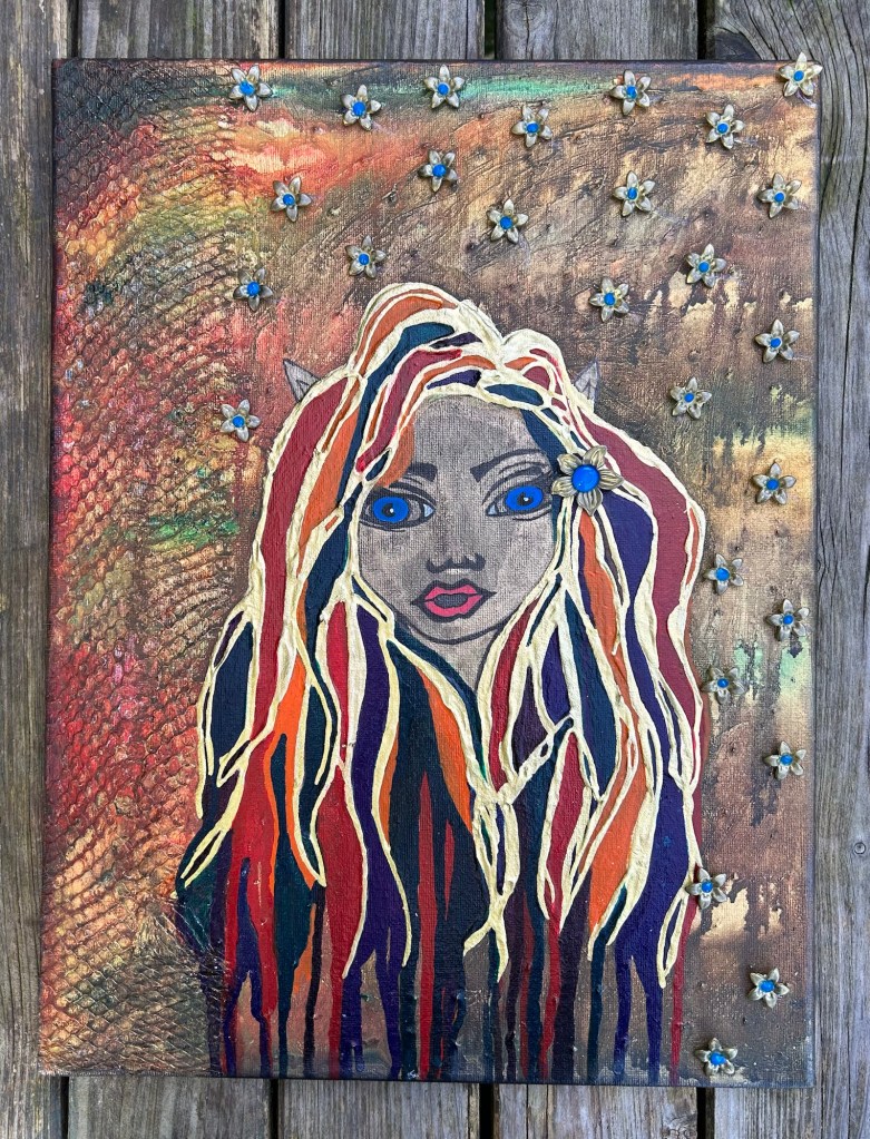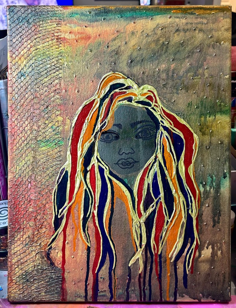 From rich jewel tones to bold primary colors, this mixed media metallic creation embraces the full spectrum of hues. Each color is carefully chosen to complement the golden backdrop, creating a harmonious balance that is both striking and harmonious. It’s a celebration of creativity and self-expression ✨💛🎨